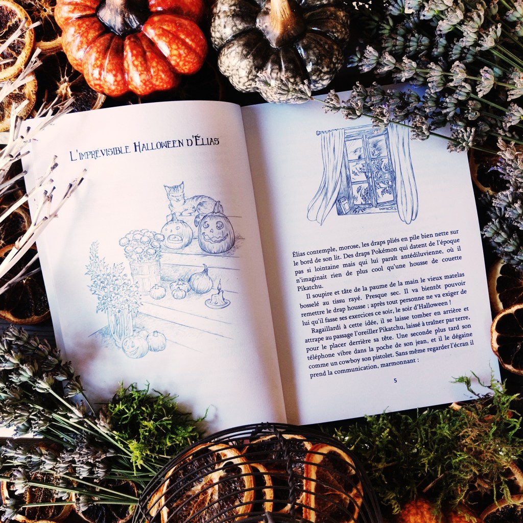 J’ai le plaisir de vous annoncer la sortie d’un nouveau livre, « L’imprévisible Halloween d’Élias », richement illustré d’une trentaine d’illustrations de la talentueuse Amandine Labarre. C’est une histoire fantastique contemporaine, adaptée à de jeunes lecteurs dès 10 ans. Le livre compte 92 pages, une trentaine d’illustrations noir et blanc, et est vendu au prix de 11,50 € (hors frais de port).