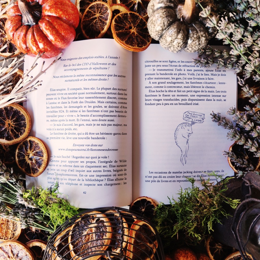 Des citrouilles à gogo, des livres ensorcelés, des fantômes revendicateurs, une triplette de chouettes, des bonbons à foison, une famille de sorcières, un vol de nuit, la forêt, la pluie, une amitié imprévue 🙂