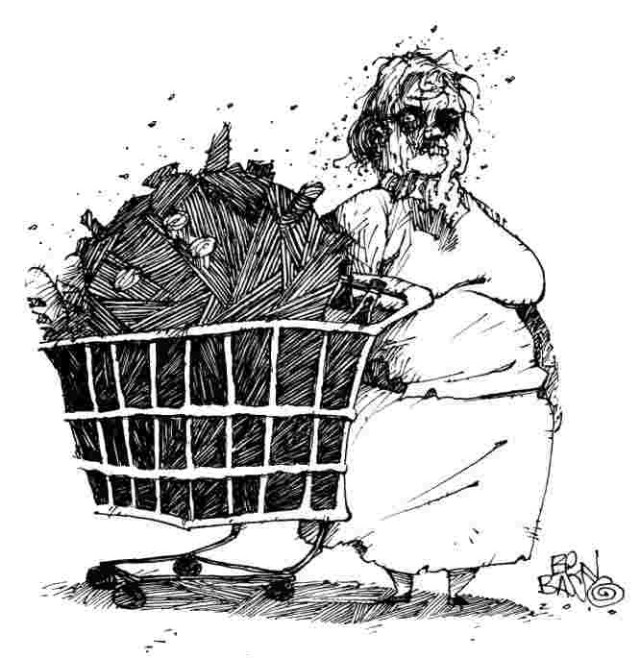 Voilà comme je l’imagine, en remplaçant le caddie par le chariot ménager ^-^