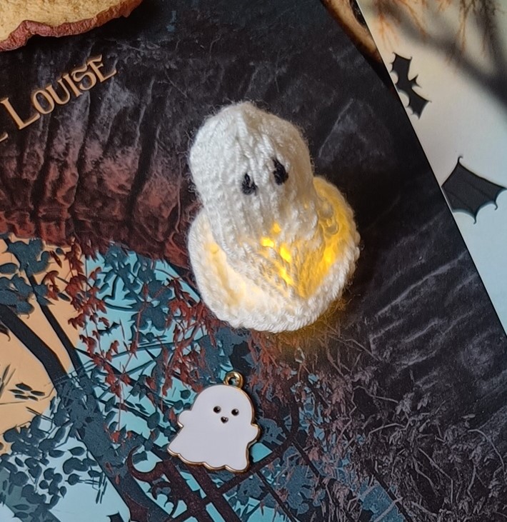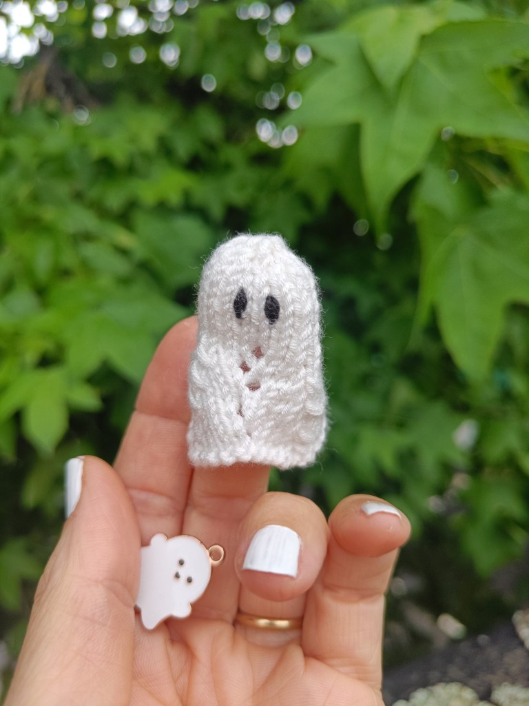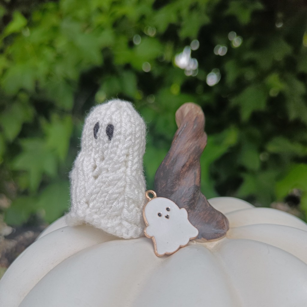 Vous pourrez aussi choisir un pack plus complet, comprenant la carte recette, le sachet d’épices et deux petits fantômes : un charme émaillé et un autre tricoté par mes soins ^-^ Ce dernier étant très long à réaliser (je m’y suis mis il y a déjà plusieurs mois !) ce pack sera en nombre limité.