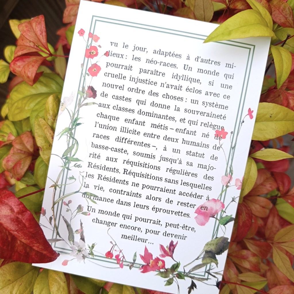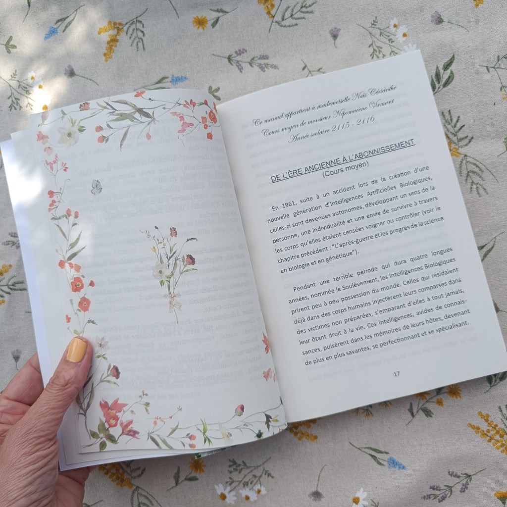 Bien que les thèmes de ce roman puissent vous paraître complexes, j’ai fait en sorte que la lecture soit fluide et agréable, en intégrant les éléments au fur et à mesure, par quelques truchements parfois, comme un extrait de livre d’école primaire. Le glossaire, présent en début de livre, est doublé d’un format fiche que vous recevrez avec le roman, afin d’accompagner votre lecture 🙂