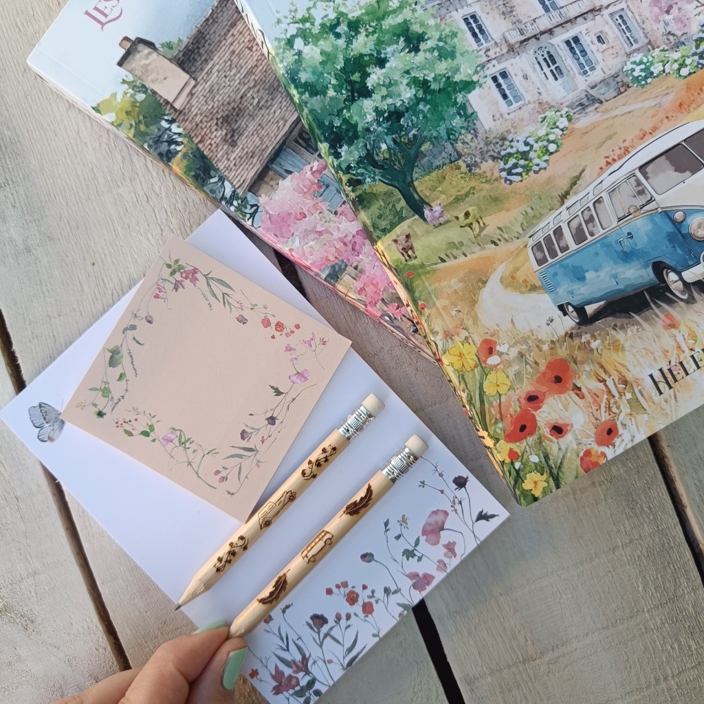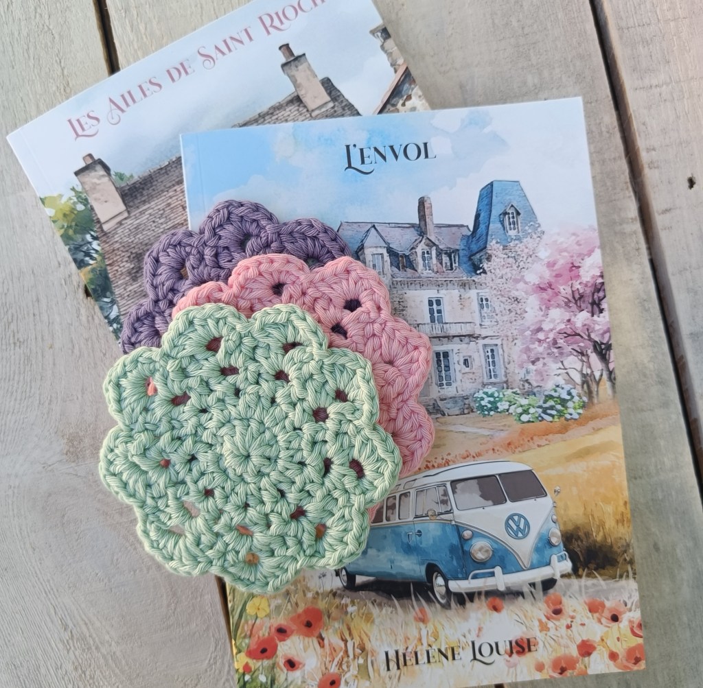Dans le pack pissenlit vous trouverez un mini bloc post-it de 50 feuilles, un bloc-notes format A6, 50 feuilles, deux mini crayons de papier en bois (gravés chacun selon les thèmes de chaque livre), un mini biscuit fourré spéculoos et un sachet papillon de thé ou de roïbos, de Tea Héritage, une sous-tasse au crochet (coloris assortis) et 4 pâtes de fruits Picard 🙂